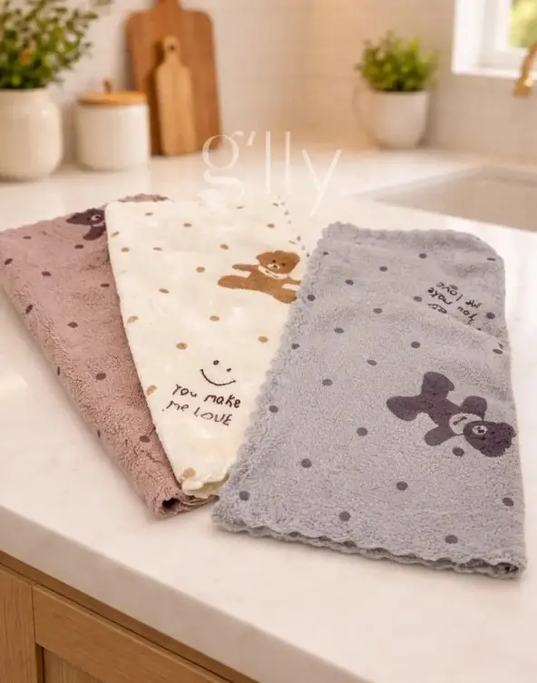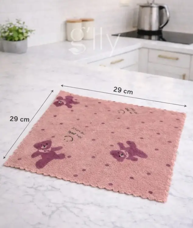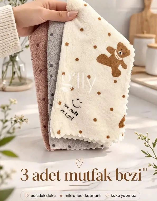 3 Adet Mutfak Temizlik Bezi (Sevimli Ayı Desenli) Yumuşak Dokulu Bez, Su Emici 29x29cm Yüksek su emici özelliği ile, özellikle mutfakta kurulama bezi ve temizlik bezi olarak kullanabilirsiniz.